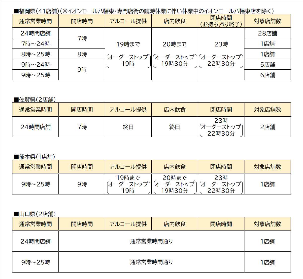 【お知らせ】5月12日(火)~山口県内2店舗の通常営業時間へ変更します