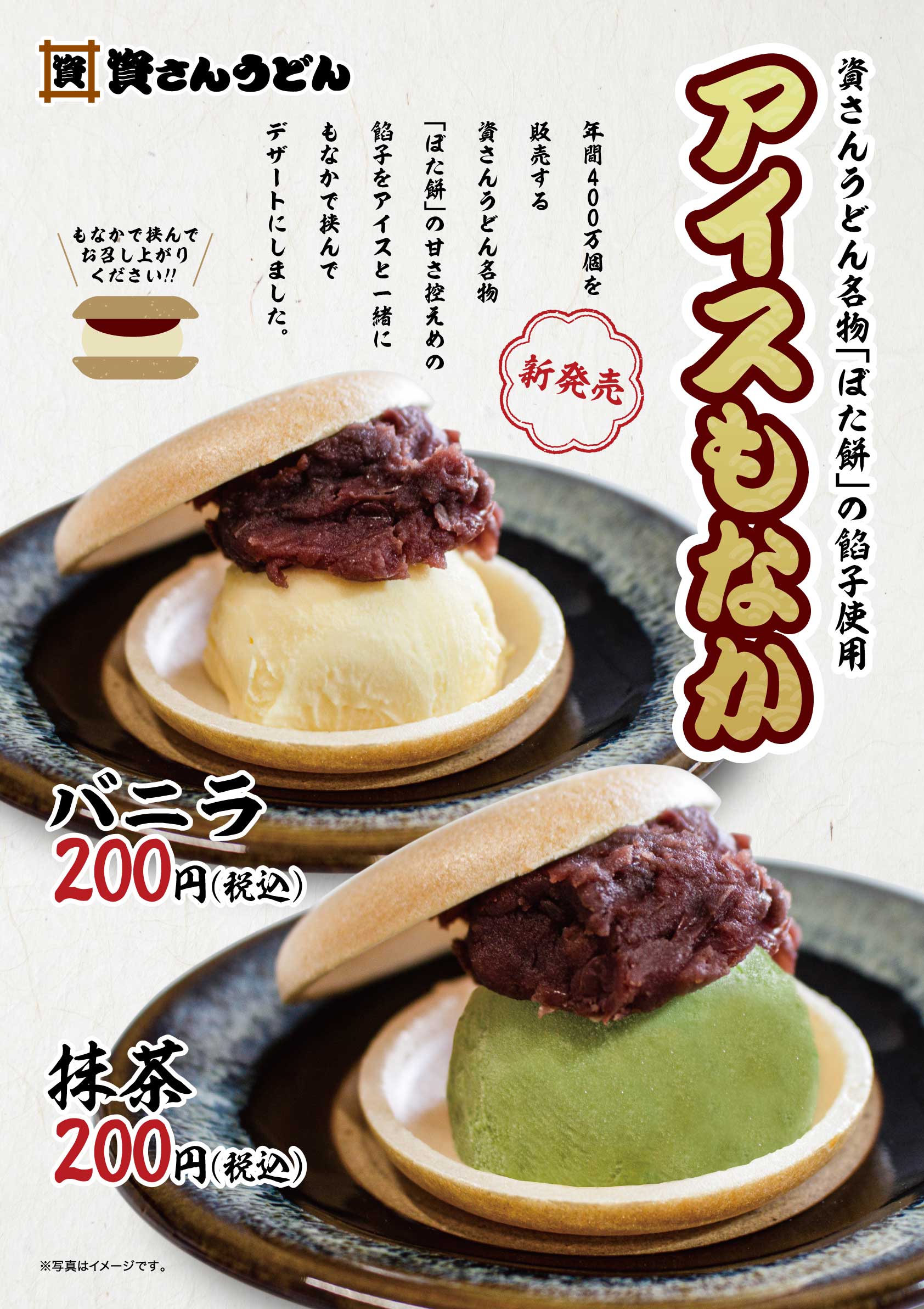 5月25日(月)~本店・新池店・南里店・新宮店・橋本店の5店舗で「アイスもなか」(200円:税込)の販売を開始しました。年間400万個を販売する名物「ぼた餅」の程よい甘さの餡子をバニラ・抹茶アイスと一緒に、サクサクのもなかで挟みました!もなかで挟んでお召し上がりください!食後のデザートとして、ぜひお召し上がりください!