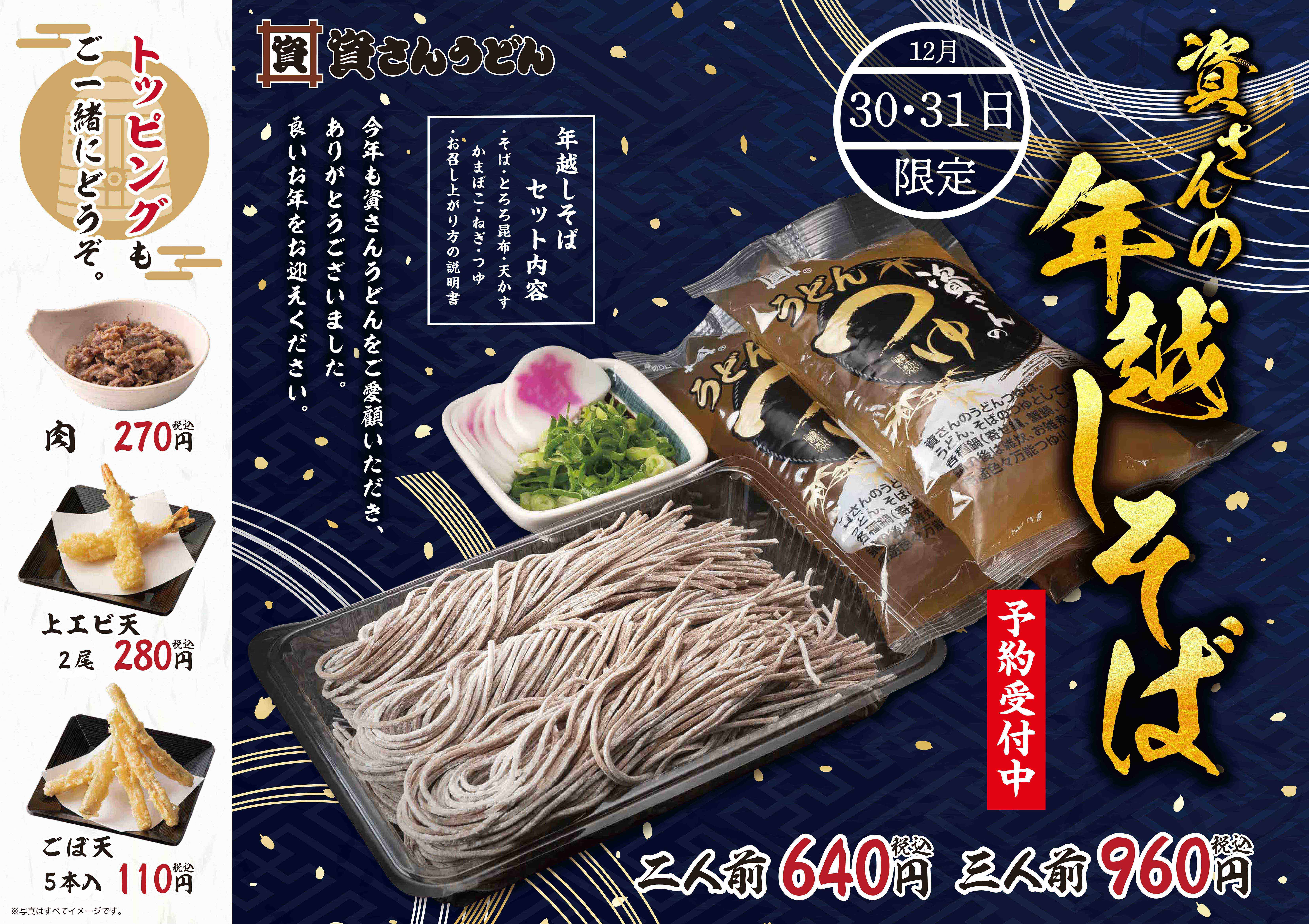 人気のトッピングメニューと一緒に「資さんうどん」こだわりの”年越しそば”をぜひ、ご堪能ください!