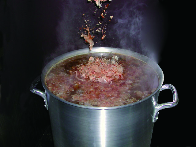 手間を惜しまず、昆布、椎茸、さば節、うるめ節、かつお節からていねいに取った黄金のつゆは、資さんの味の決め手です。