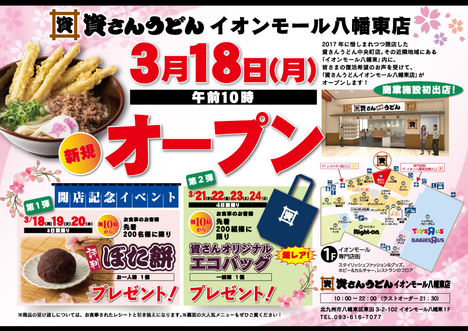 3月18日(月)資さんうどん「イオンモール八幡東店」がグランドオープン致しました!
