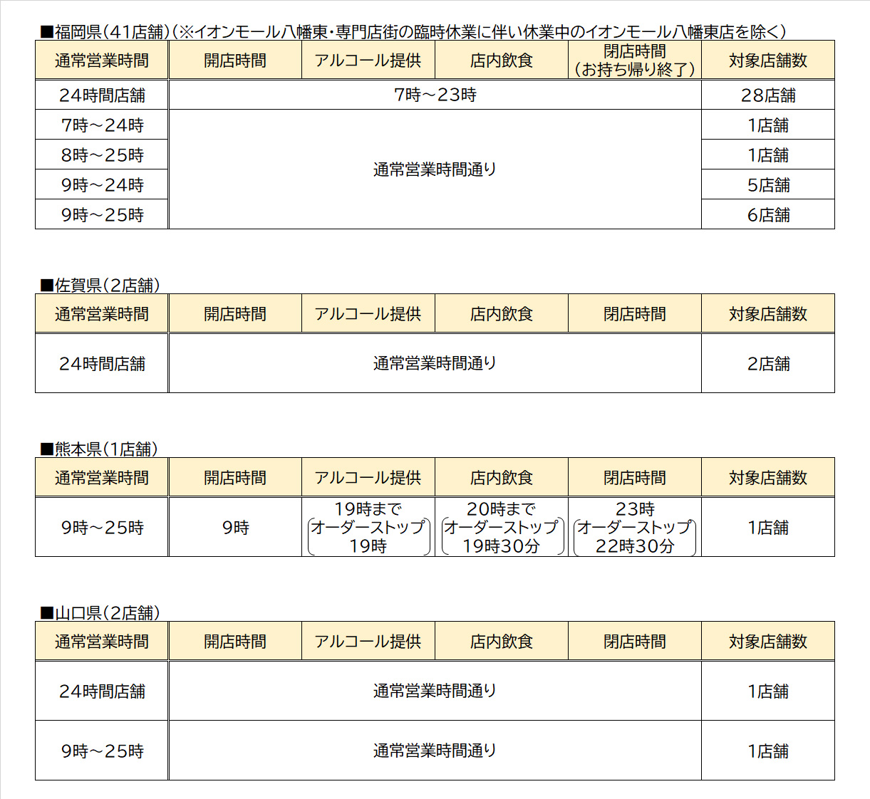 【お知らせ】5/15(金)~福岡県41店舗・佐賀県2店舗の営業時間見直します