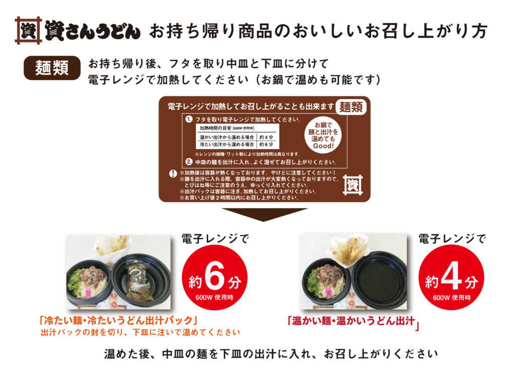 【資さんうどん のお持ち帰りの温め方について】