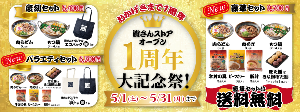 通販サイト「資さんストア」オープン1周年!皆さまへ感謝を込めて「1周年大記念祭」を5月1日(土)11時~期間限定で開催!