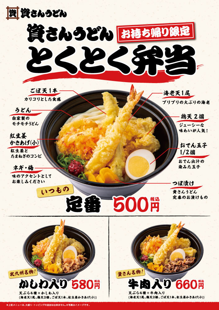 資さんうどんに、お持ち帰り限定「とくとく弁当」が6/14(月)〜登場![]()