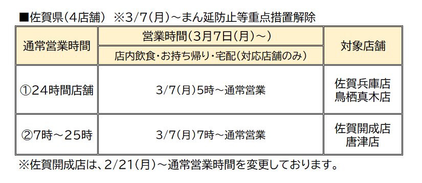 平素より資さんうどんをご愛顧頂き、ありがとうございます。まん延防止等重点措置解除に伴い、資さんうどん佐賀県下4店舗は、3/7(月)~通常営業を再開致します。詳細は下部内容をご参照頂けますと幸いです。引き続き、資さんうどんを宜しくお願い致します。