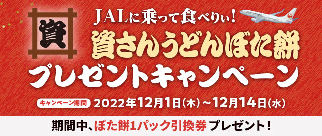 12/1~14 JAL羽田→北九州便 資さんうどんぼた餅プレゼントキャンペーン!