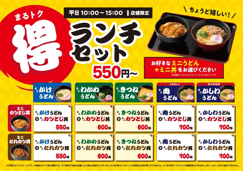 550円~ミニうどんとミニ丼のセットです!