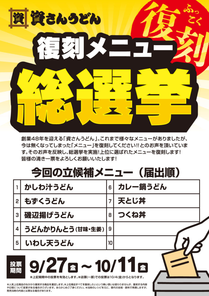 資さんうどん復刻メニュー総選挙概要