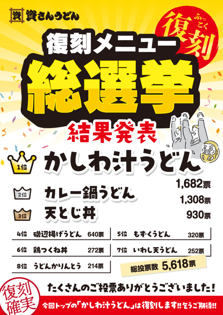 【資さんうどん復刻メニュー総選挙結果報告】