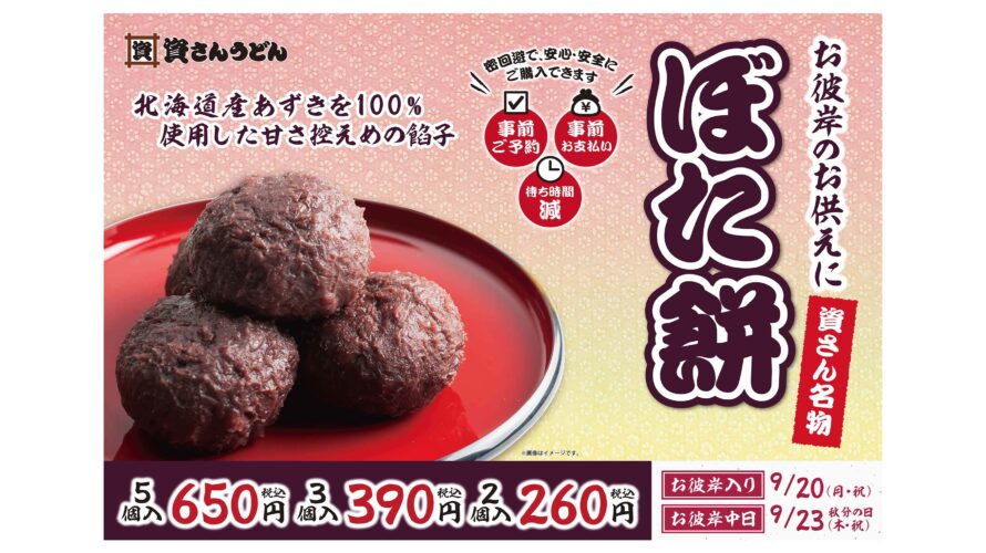 秋のお彼岸に合わせ、名物”ぼた餅”の事前ご予約受…