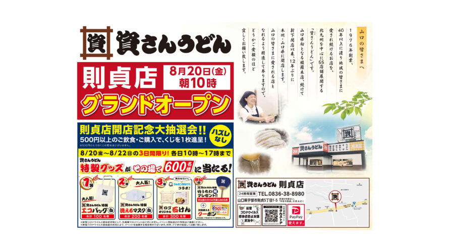 8/20(金)10時~資さんうどん則貞店グランドオープン!
