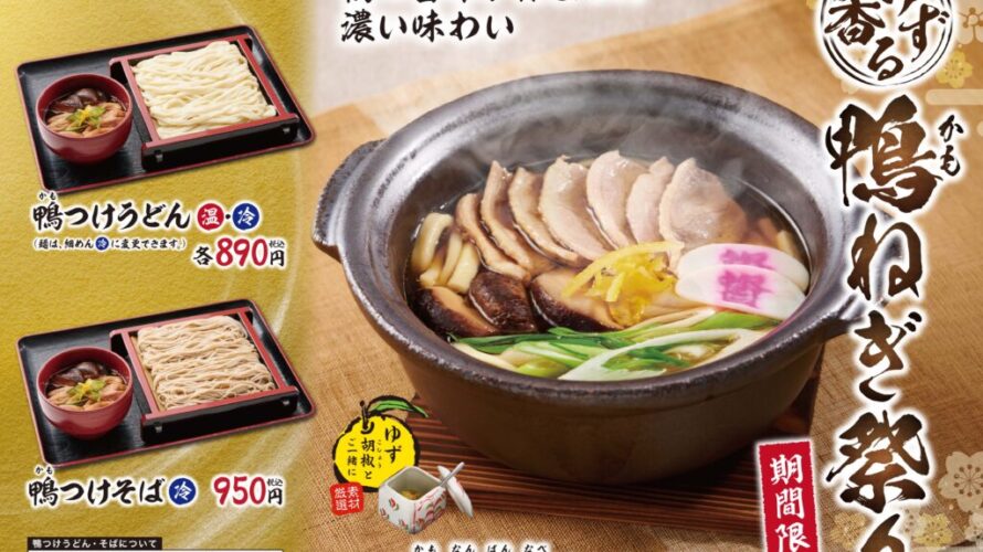 脂ののった鴨肉の旨味とゆずの味わいが楽しめる期間限定”…