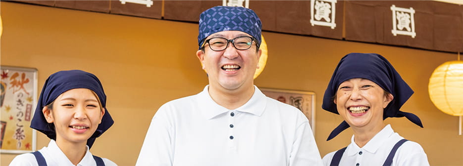 資さんの経営理念「幸せを一杯に。」これは私たち資さんおよび全従業員が未来に向けて、大切にしていく「使命」、「目指すこと」、「(お客様に対してする・従業員同士が共にする)約束」を言葉に表したものです。 創業時から受け継いできた「お客様を喜ばせたい」というDNA、資さんがお客様にご支持頂けている理由、これから目指していくありたい姿、克服するべき課題など、経営幹部、エリア長、店長等で何度も議論を重ね、創業者の想いと現在活躍しているメンバーの想いを集約したものとなっています。私たちはこの経営理念を実現することで、すべてのお客様に幸せを一杯に提供し、従業員も幸せ一杯に働く企業であり続けたいと考えています。